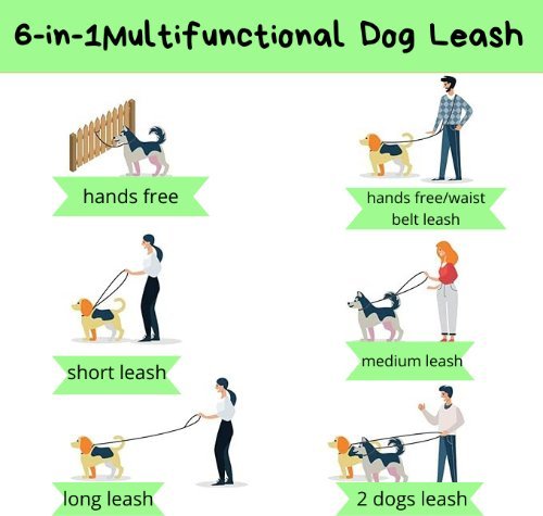 Hands free Waist & Crossbody Dog Leashes for Walking and Running Durable for 2 dogs