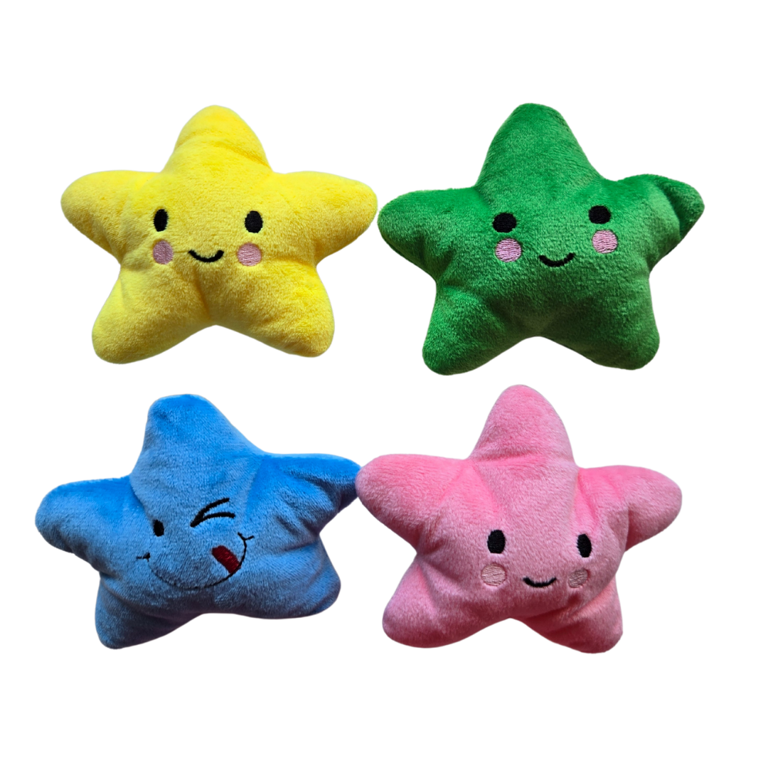Each toy is equipped with a built-in squeaker that makes a fun, attention-grabbing sound when squeezed or bitten, keeping your pet engaged and entertained. Choose from adorable star or cloud shapes in cheerful colors like yellow, green, blue, pink.